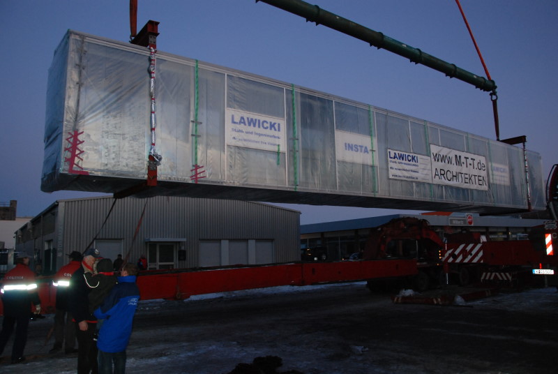 komplett vormontiert, transportiert und vor Ort nur eingehängt. Die 52